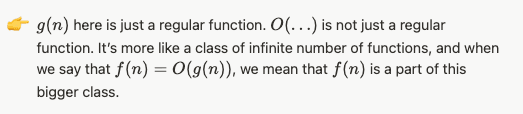 So, we don’t really care about constant multipliers here. For example, 3n = O(n). And 30n = O(n). and 3000n = O(n). Because when n approaches infinity, these finite numbers dwarf in comparison.