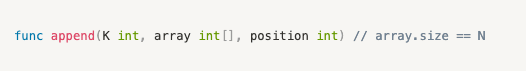 Is it only the number K that we need to insert? Ohh no. Our array of size N is also an input.